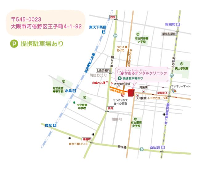 阪堺電軌上町線「北畠」より徒歩5分、地下鉄御堂筋線「昭和町」、「西田辺」駅より徒歩10分。