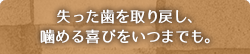 など、さまざまな入れ歯をご用意し、皆さんのお口に合うものをご提供させていただきます。入れ歯があわないせいで日常的なことに不便を感じ、生活を思い切り楽しめないと悩みや不満をお持ちの方、ぜひ『自分の歯のように噛める幸せ』を感じてください。